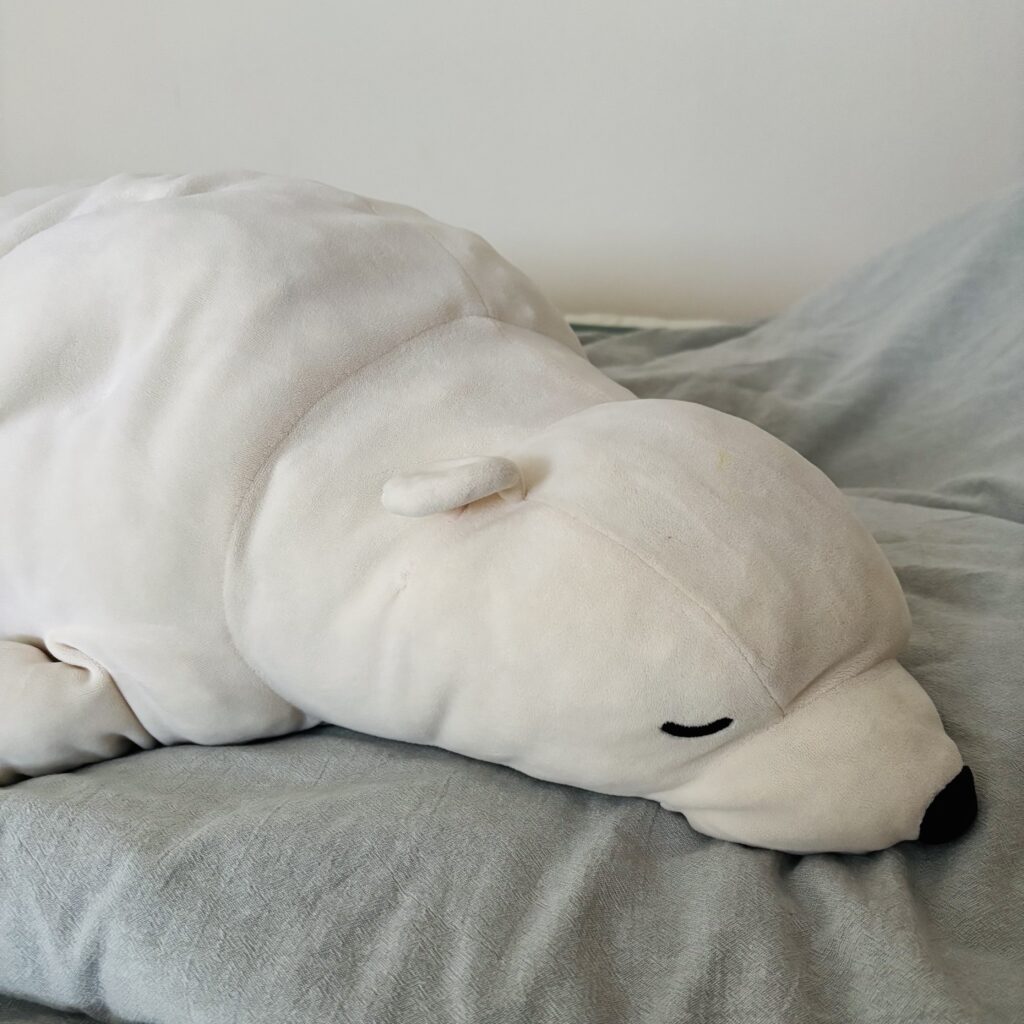 お風呂に入れずペタペタの髪の毛は気持ち悪かったけれど、とりあえず横になり痛み止めを飲みました。抱き枕を使って横向きで寝ると少しラクに。これは入院前からずっと使っているもので本当に助かりました。よく考えてみたら10年くらい使っているかも…(え?)